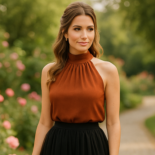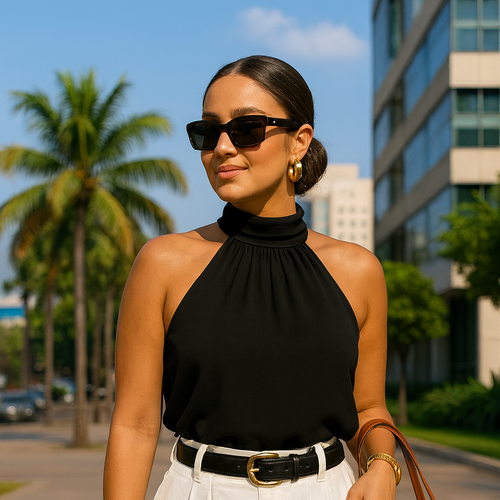 A blusa perfeita para quem busca elegância sem esforço. Feita em tecido Duna, ela oferece caimento impecável, toque macio e zero transparência (possui forro na parte do sutiã). O modelo Mia com gola alta franzida valoriza o colo, alonga a silhueta e traz aquele ar sofisticado que combina tanto com looks casuais quanto com produções mais elegantes.